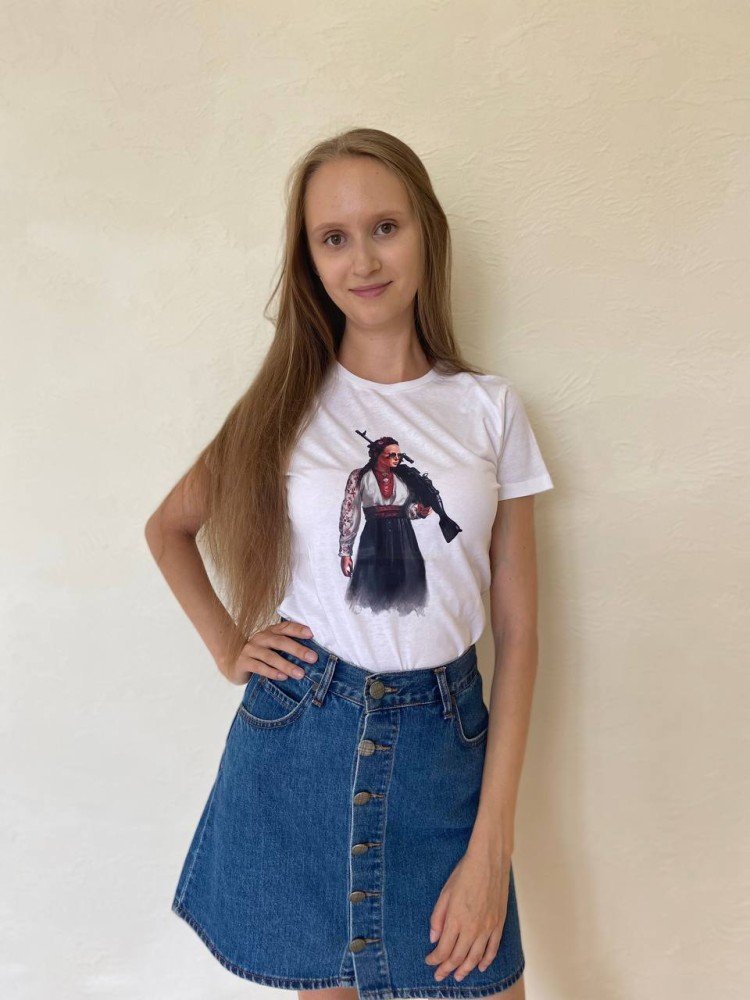 Біла футболка з натуральної бавовни з коротким рукавом. Оригінальний принт відмінно підійде людям, що бажають виділитись.