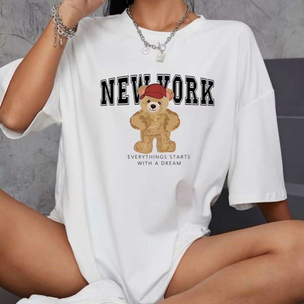 Комфортна жіноча біла оверсайз футболка з модним принтом вражаючий союз ультрасучасних модних тенденцій і максимально можливого рівня зручності в дні, що палять