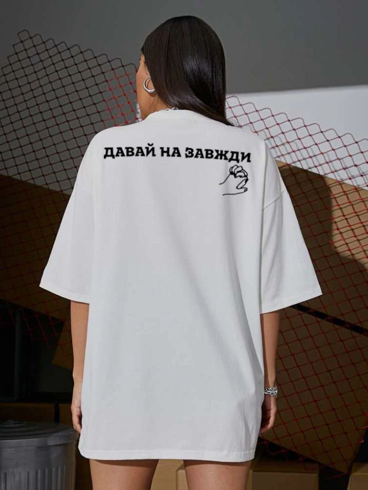 Комфортна жіноча біла оверсайз футболка з модним принтом вражаючий союз ультрасучасних модних тенденцій і максимально можливого рівня зручності в дні, що палять