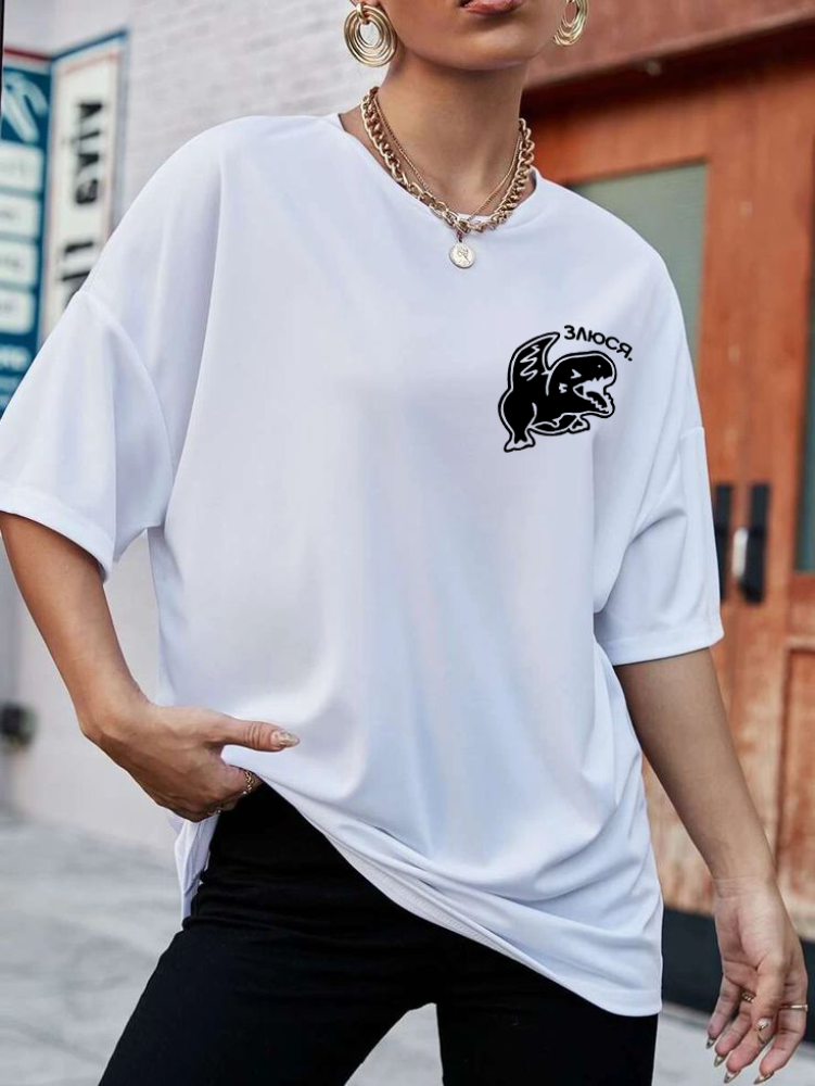 Комфортна жіноча біла оверсайз футболка з модним принтом вражаючий союз ультрасучасних модних тенденцій і максимально можливого рівня зручності в дні, що палять