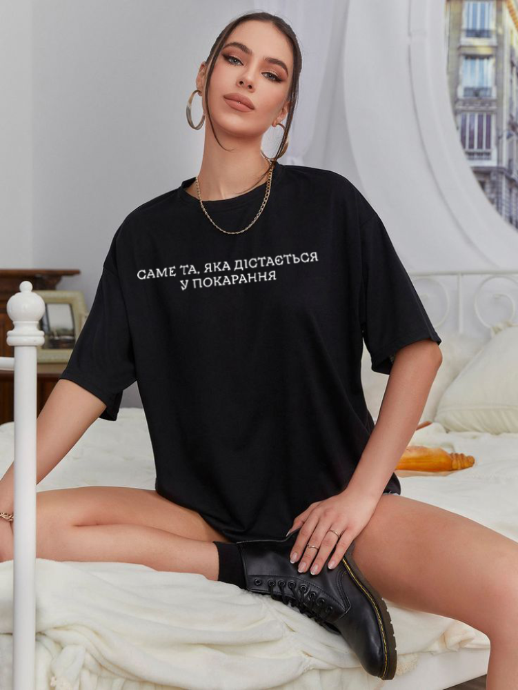 Жіноча чорна модна оверсайз футболка з трендовим принтом вражаючий союз ультрасучасних модних тенденцій і максимально можливого рівня зручності в дні, що палять