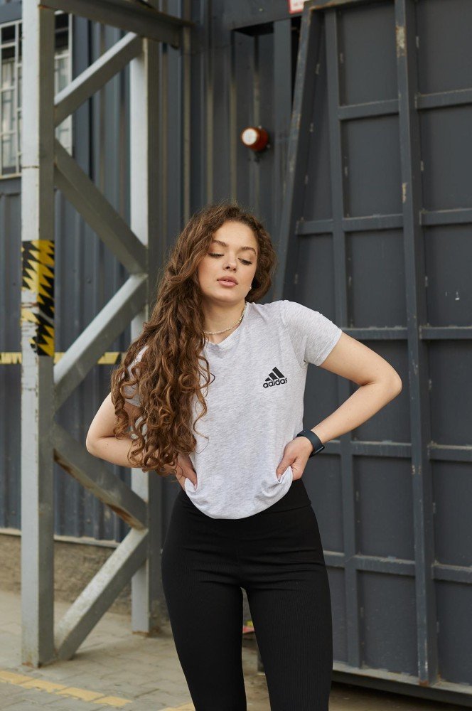 Класична однотонна футболка на кожен день із фірмовим принтом. Спереду по центру накатаний великий принт