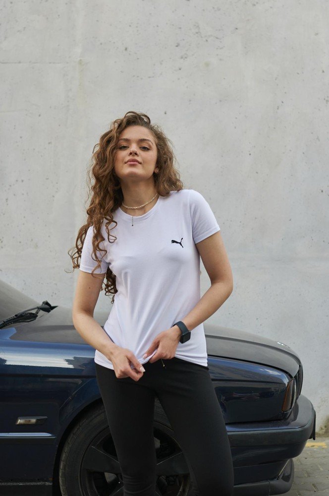 Класична однотонна футболка на кожен день із фірмовим принтом. Спереду по центру накатаний великий принт