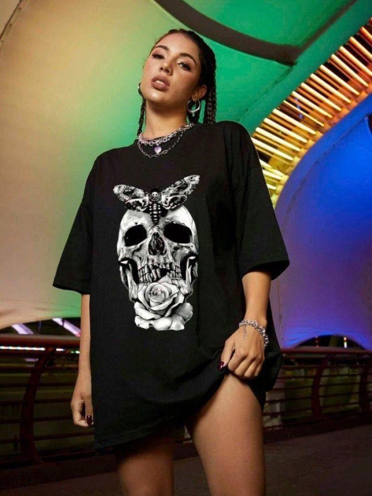 Трендова чорна жіноча літня оверсайз футболка з модним принтом вражаючий союз ультрасучасних модних тенденцій і максимально можливого рівня зручності в дні, що палять