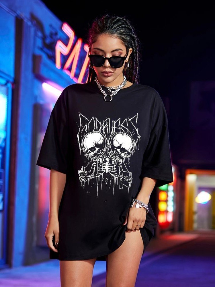 Жіноча чорна комфортна оверсайз футболка з яскравим дизайном вражаючий союз ультрасучасних модних тенденцій і максимально можливого рівня зручності в дні, що палять