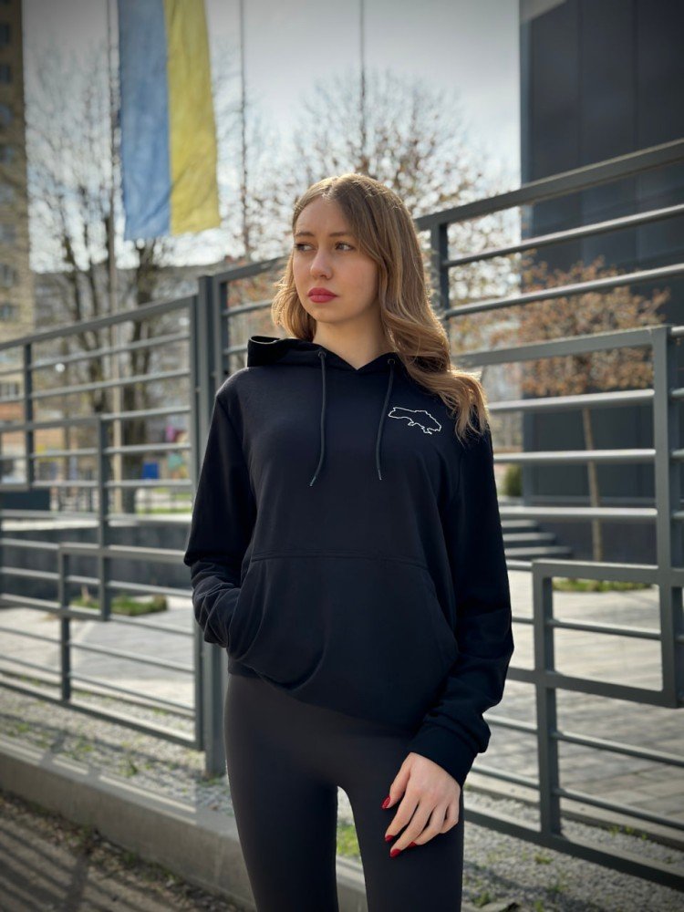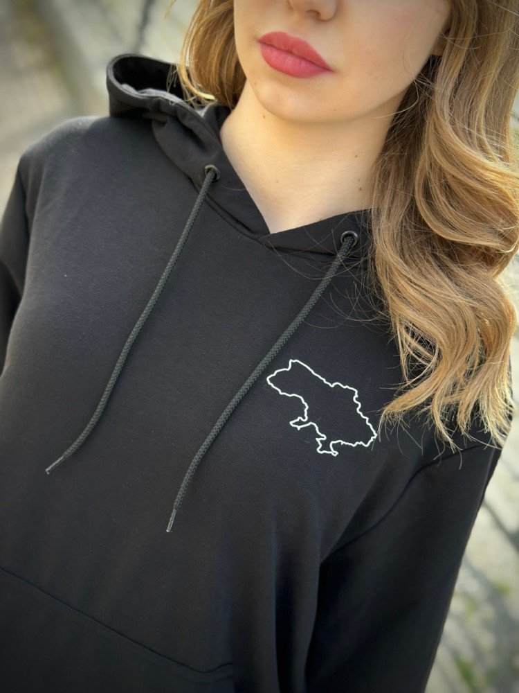 Будьте першим, хто залишив відгук на “Жіночий демісезонний худі з Картою України чорний (двонитка)”