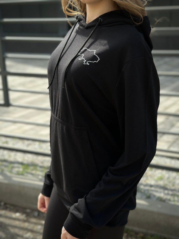 Жіночий демісезонний худі з Картою України чорний (двонитка)