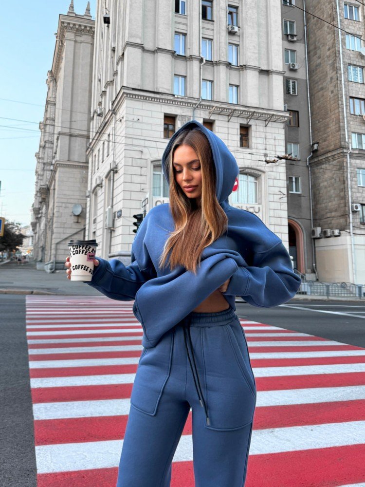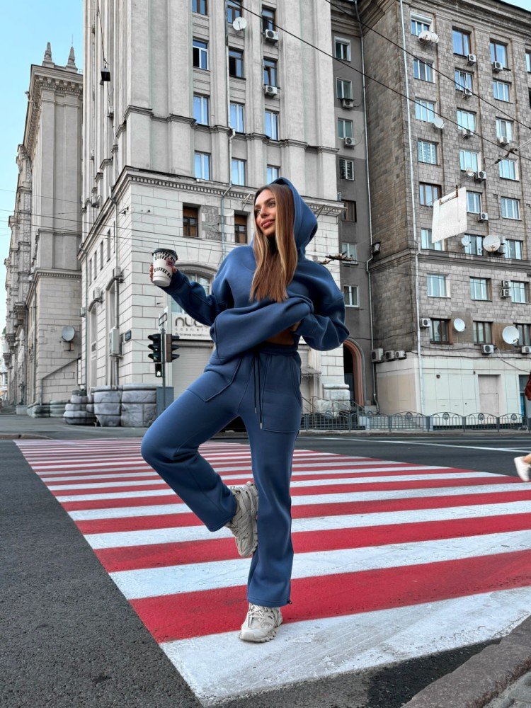 Будьте першим, хто залишив відгук на “Жіночий зимовий оверсайз спортивний костюм з начісом Sanrado синій індиго RD405”