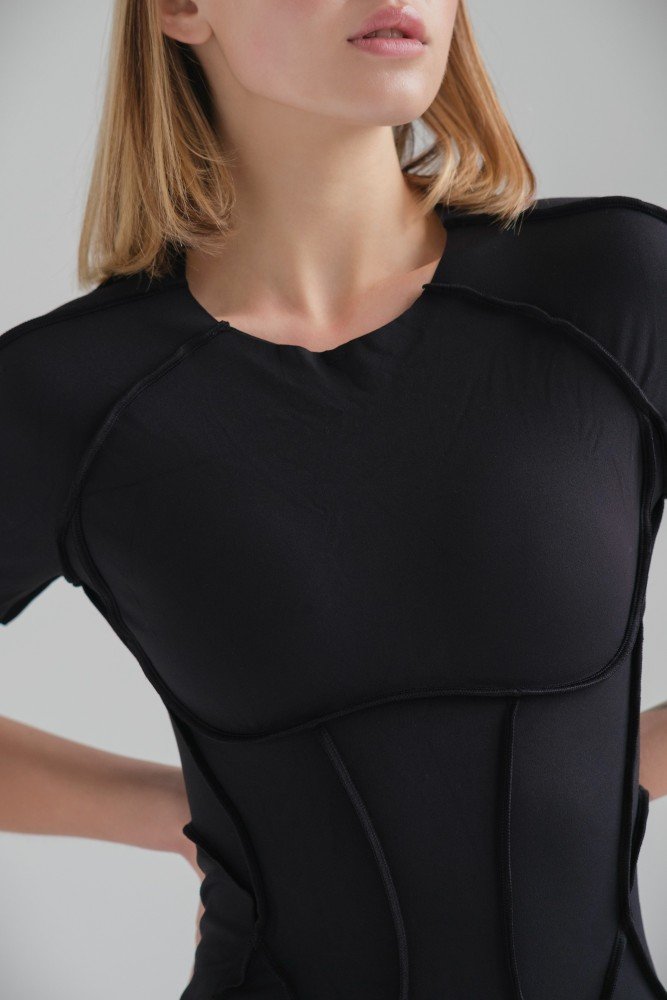 Виконаний з приємної тканини , яка добре тягнеться та ідеально облягає тіло, не обмежуючи при цьому рухів.