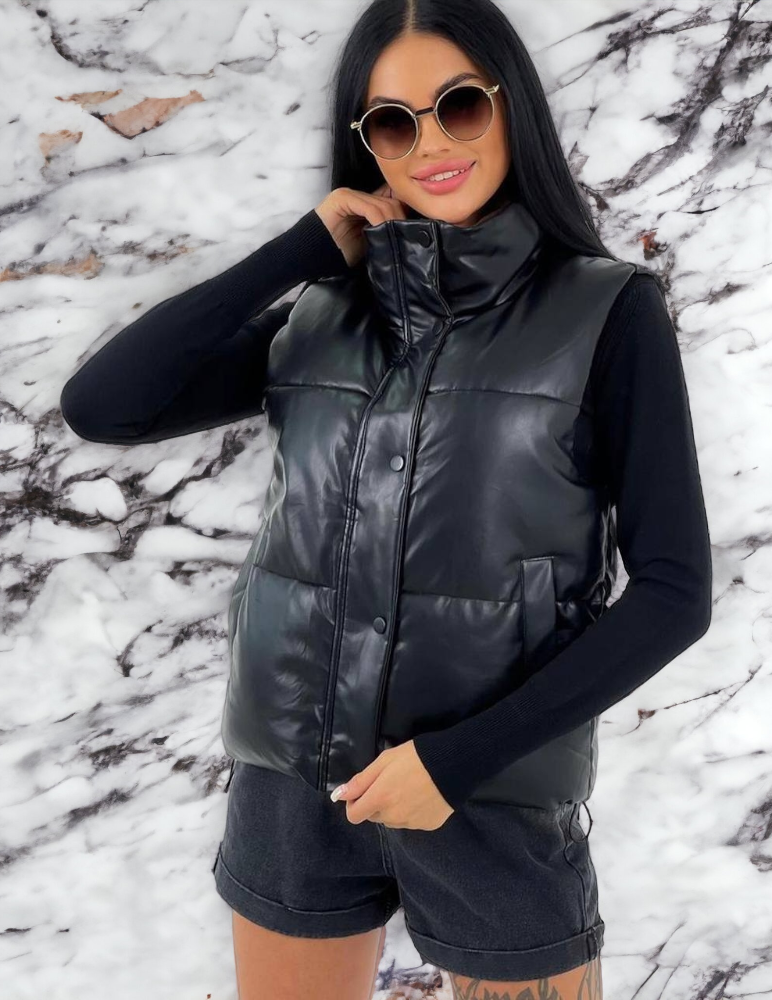 Жіночий стильний жилет з еко шкіри