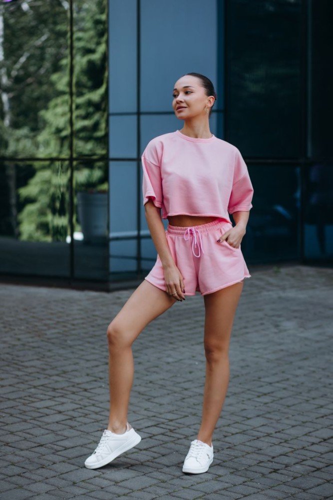 жіночий костюм топ футболка з шортами . Тканина двохнитка петля . дуже зручний та ефектний .