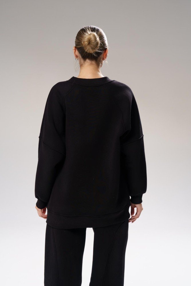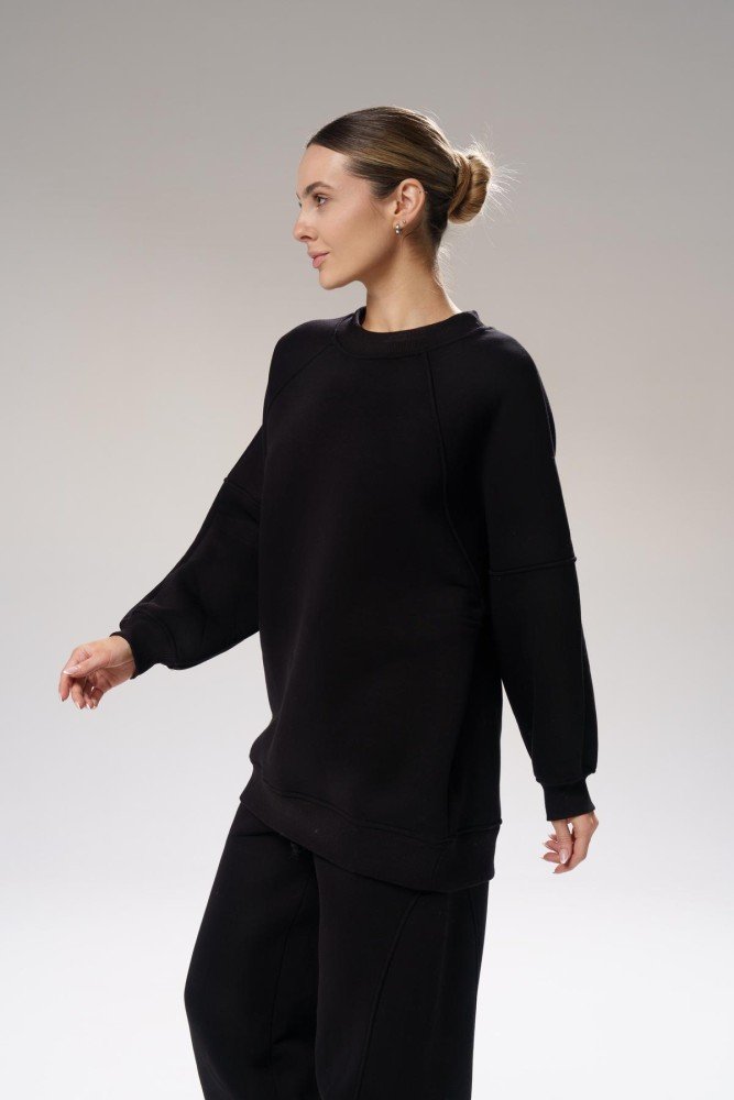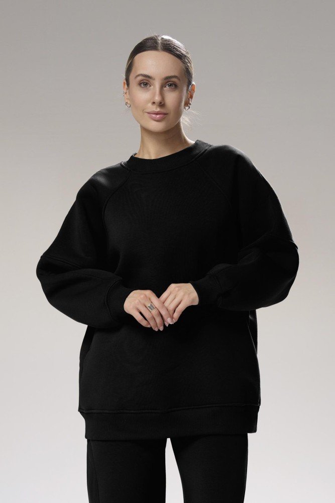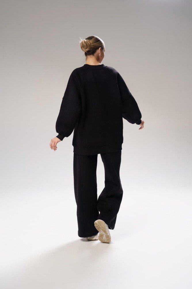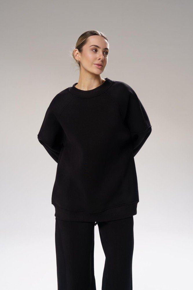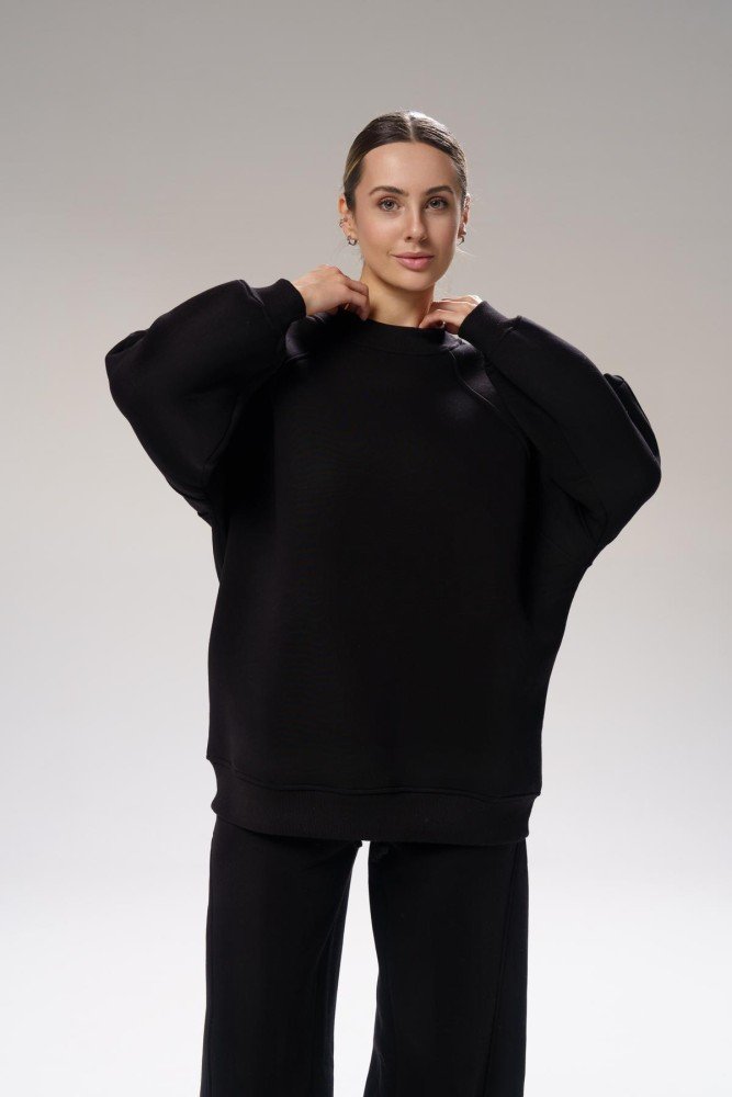 Світшот: Об’ємний крій із заниженою лінією плечей і спущеними рукавами. М’які манжети надають додатковий затишок і стиль.