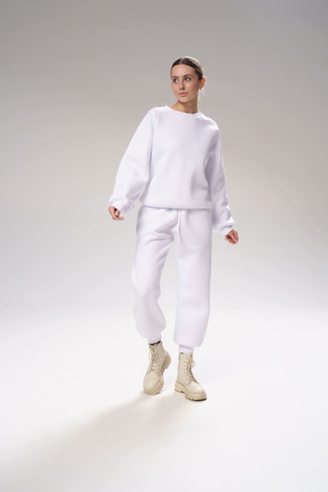 – Світшот: має вільний крій, який не сковує руху, має круглий виріз що створює класичний образ, а манжети на рукавах надають образу акуратності та завершеності, м’яко фіксують тканину на зап’ясті, запобігаючи розтягуванню і надаючи більш естетичної краси.