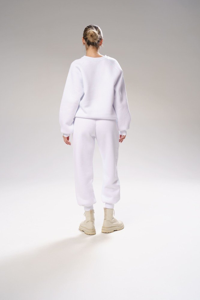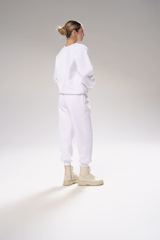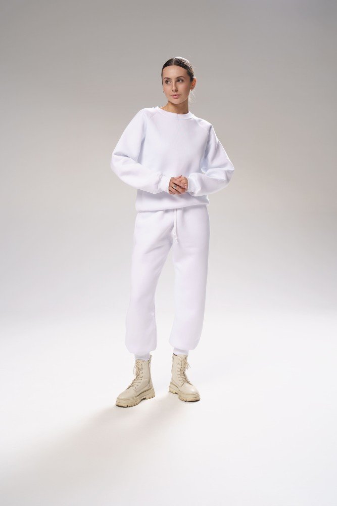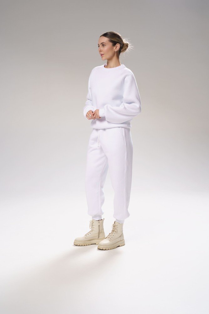 – Штани: класичні джоггери з високою посадкою чудово сідають по фігурі, підкреслюючи силует, а еластичний пояс гарантує зручну посадку та адаптується під особливості фігури. Манжети на штанах фіксують штанини, створюючи стильний та сучасний вигляд. Прямий крій з невеликими звуженням до низу робить силует візуально стрункіше.