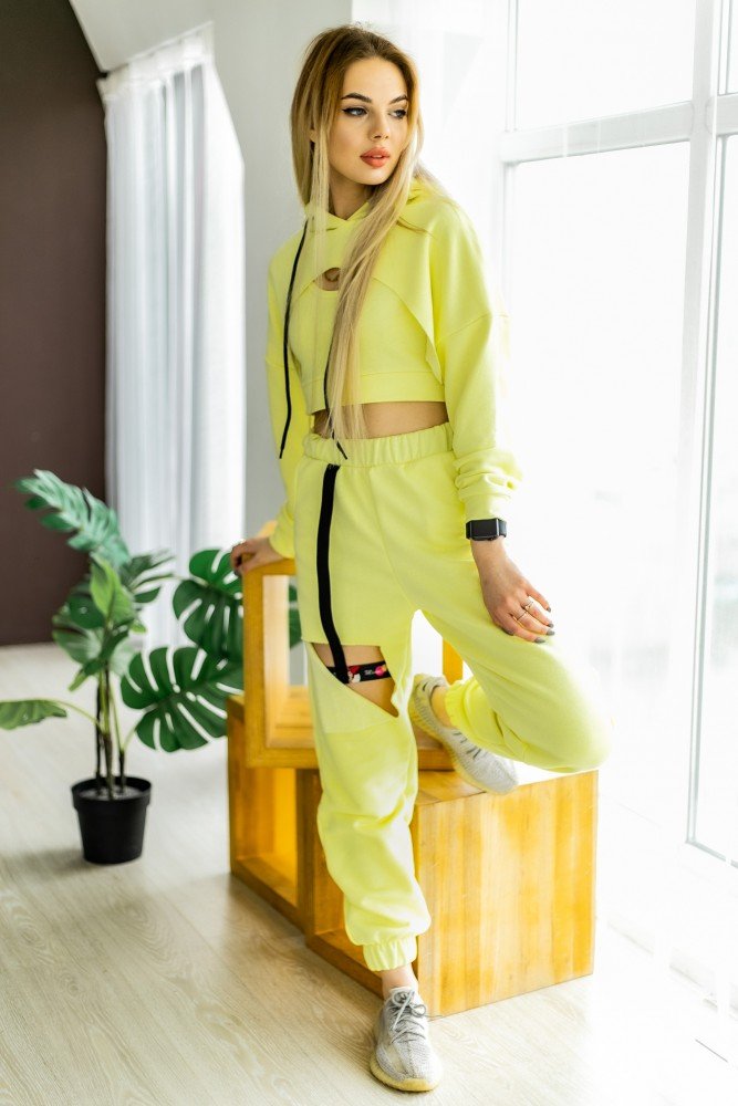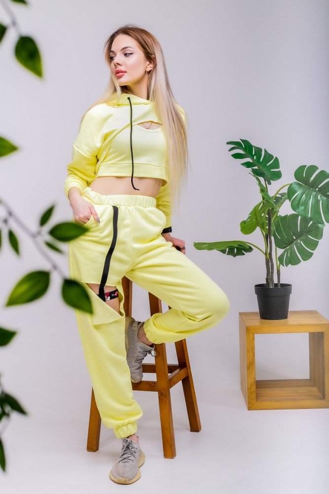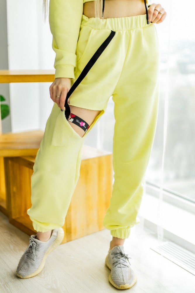 – На одній штанині в області фіксації тасьми з гумкою виріз.