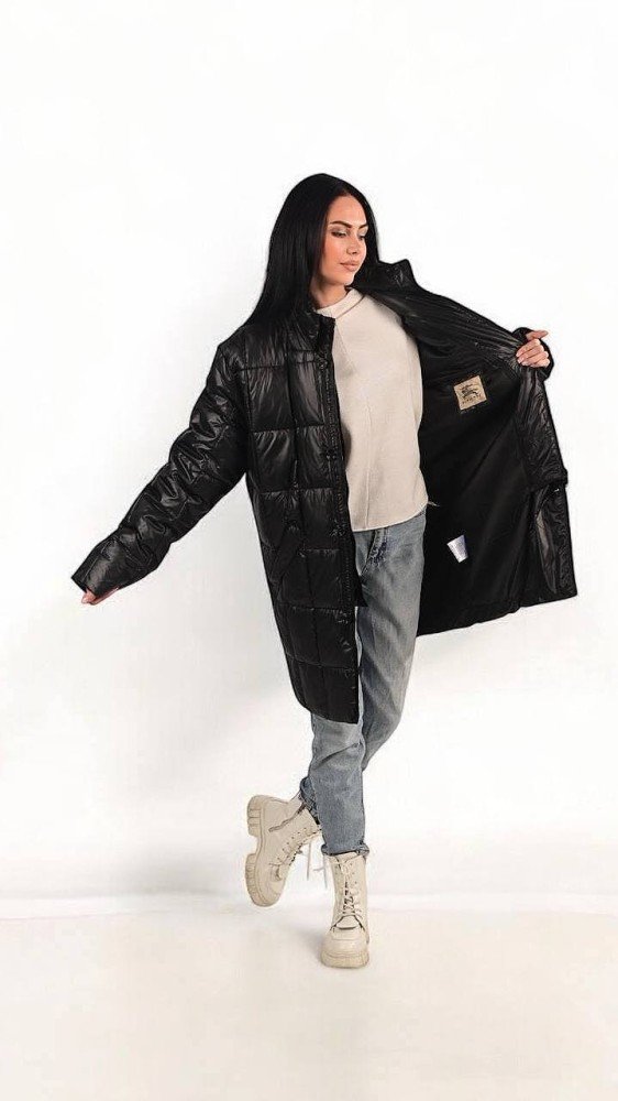 Куртка подовжена в стилі Burberry зимаєврозима чорна