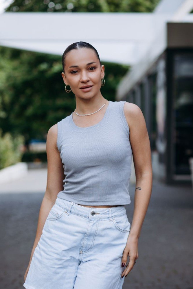 майка – топ в мілкий рубчик. Склад 100% котон .