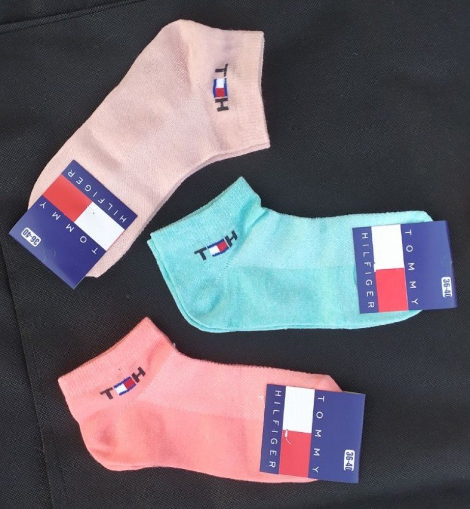 Набор носков Tommy Hilfiger (3 шт) короткие сетка хлопок размер 36-40 микс (розовые, бирюзовые, бежевые)