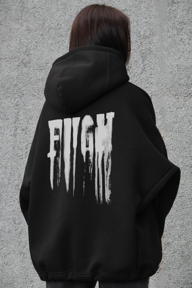 Оверсай худі толстовка на флісі з капюшоном та принтом Without Fight black