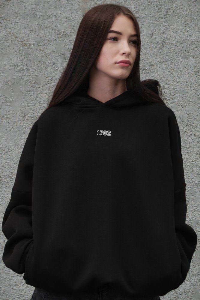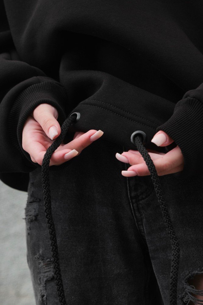 Чорне оверсайз худі з яскравим принтом — стильне і комфортне рішення для повсякденного образу.