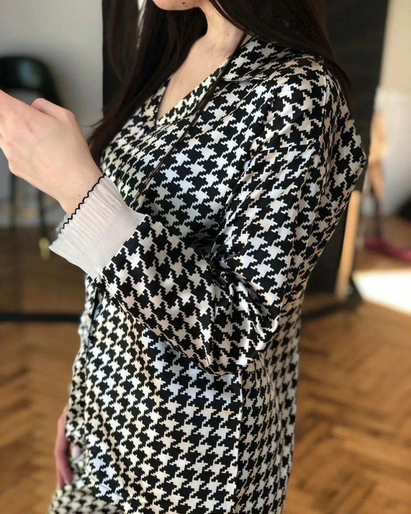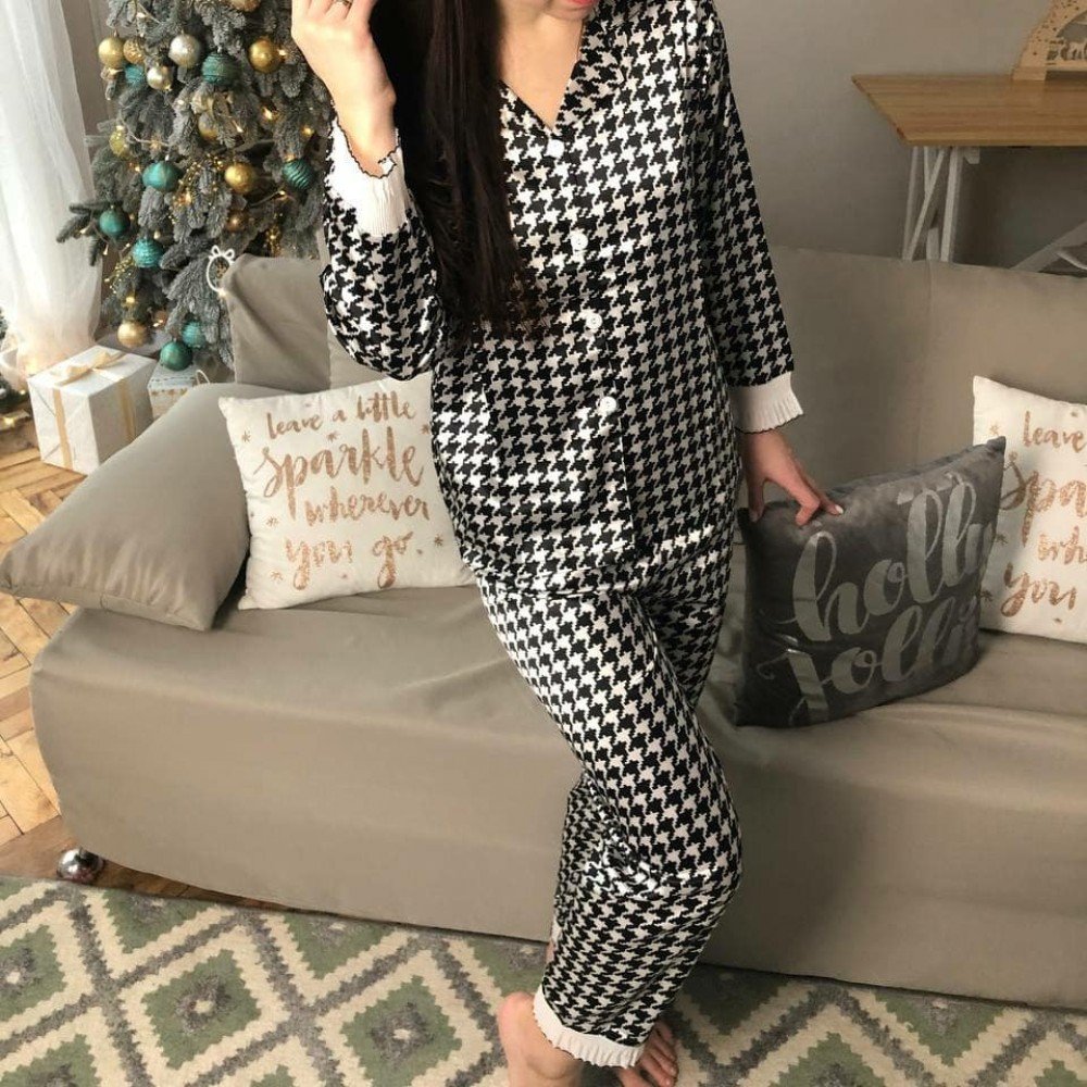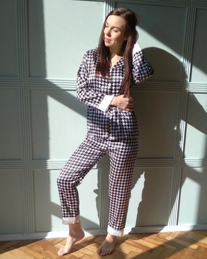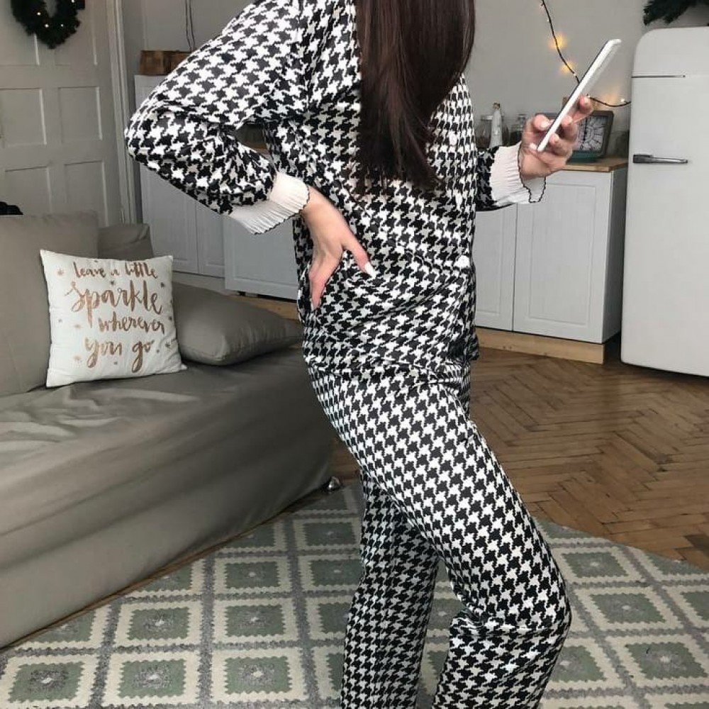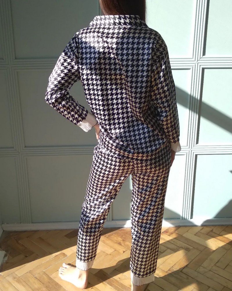 Стильный домашний комплект. Рубашка на пуговицах + штаны. Дополнен кружевом.