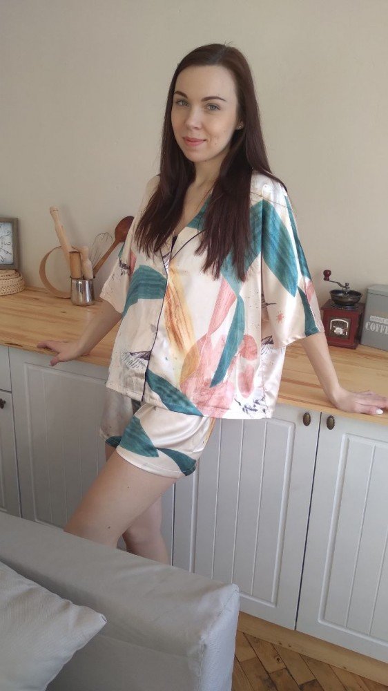 Комплект для дома и сна. Рубашка свободного кроя + шорты. Невероятно красивый и удобный. Скроет любые недостатки фигуры.