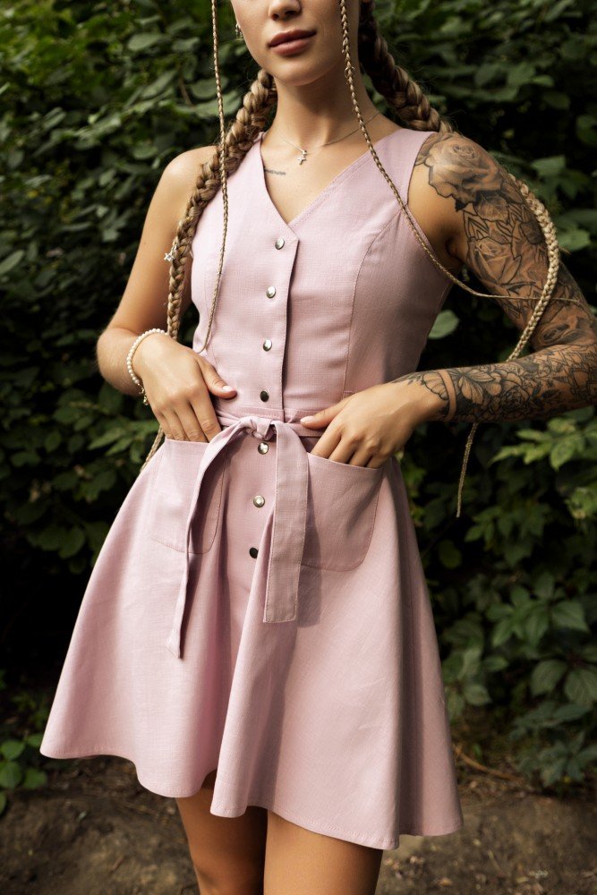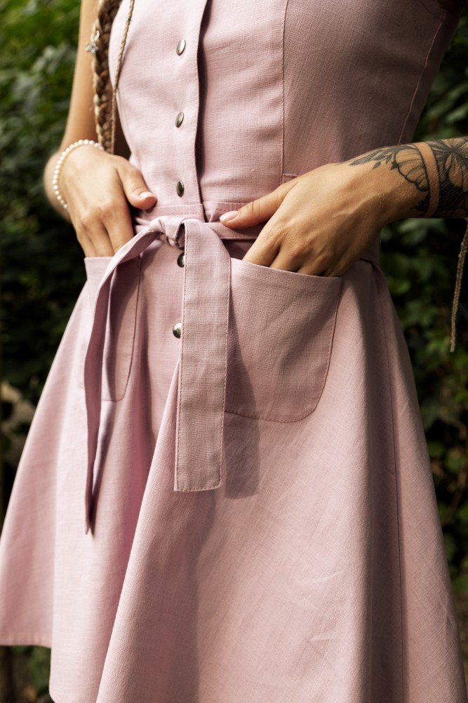 – Сарафан застегивается на кнопки, которые доходят до середины юбки;